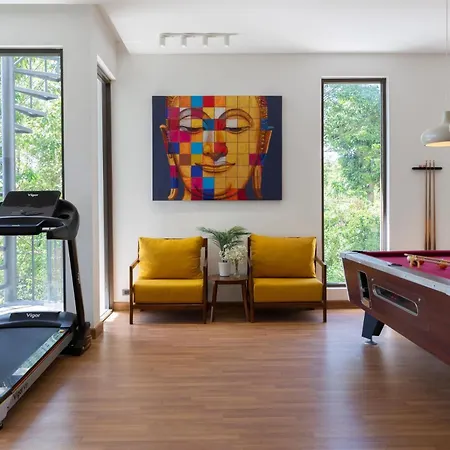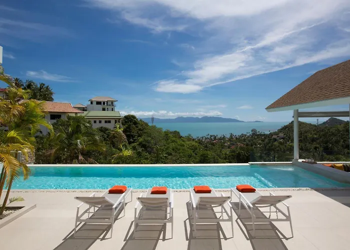Luxury Sea View Jungle Beach Villa Walk To Beach Ban Bang Po med 5 sovrum, som ligger 5 km från Nathon-piren, har en privat pool som garanterar en avkopplande vistelse. Gästerna kan delta i bordtennis och biljard i den här villan, som ligger inom 10 minuters bilresa från Santiburi Golf Course.